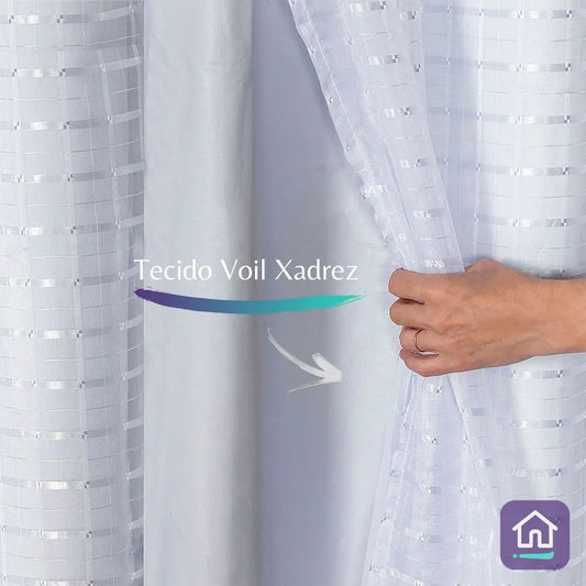 Desconto de 27%Cortina Blackout Xadrez Charme - Branco (vários tamanhos)