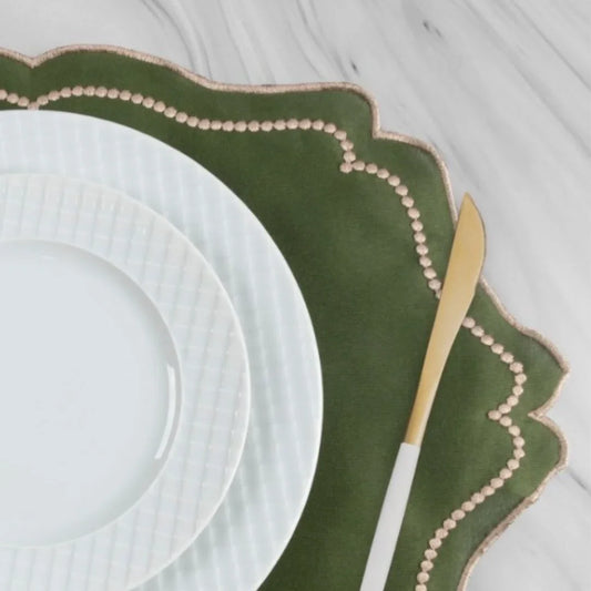 Desconto de 20%Jogo Americano Bordado Realeza - Verde Musgo