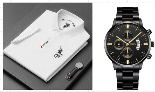 Camisa Polo Vogue Bordado Coreano Original (Você ganha o Relógio Minimalista Geneva de Brinde)