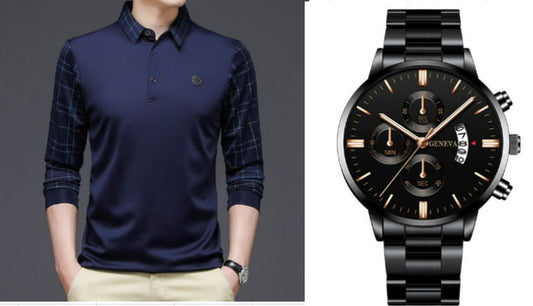 Camisa Comprida Polo Religari com Manga e Gola Design Único Original (Você Ganha um Relógio Geneva de Brinde)