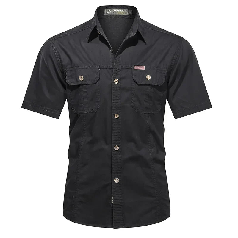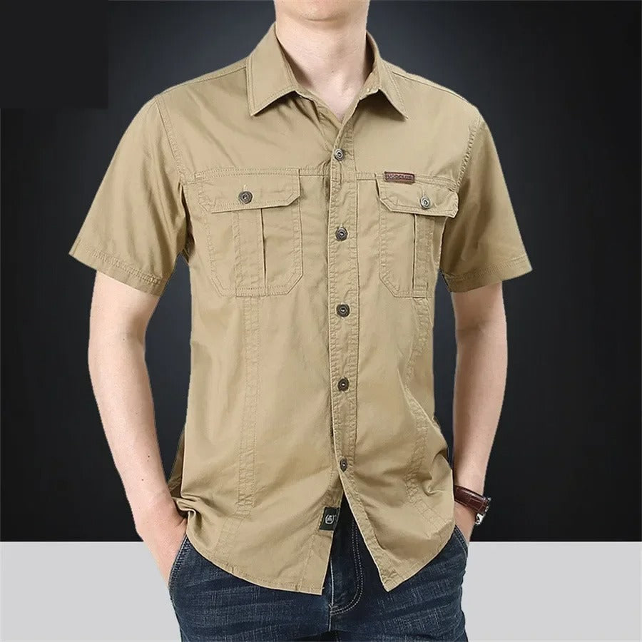 Camisa Manga Curta Military Com Bolsos, Botões e Design Único Original (Você Ganha Um Relógio De Luxo Quartzo Deyros de Brinde)