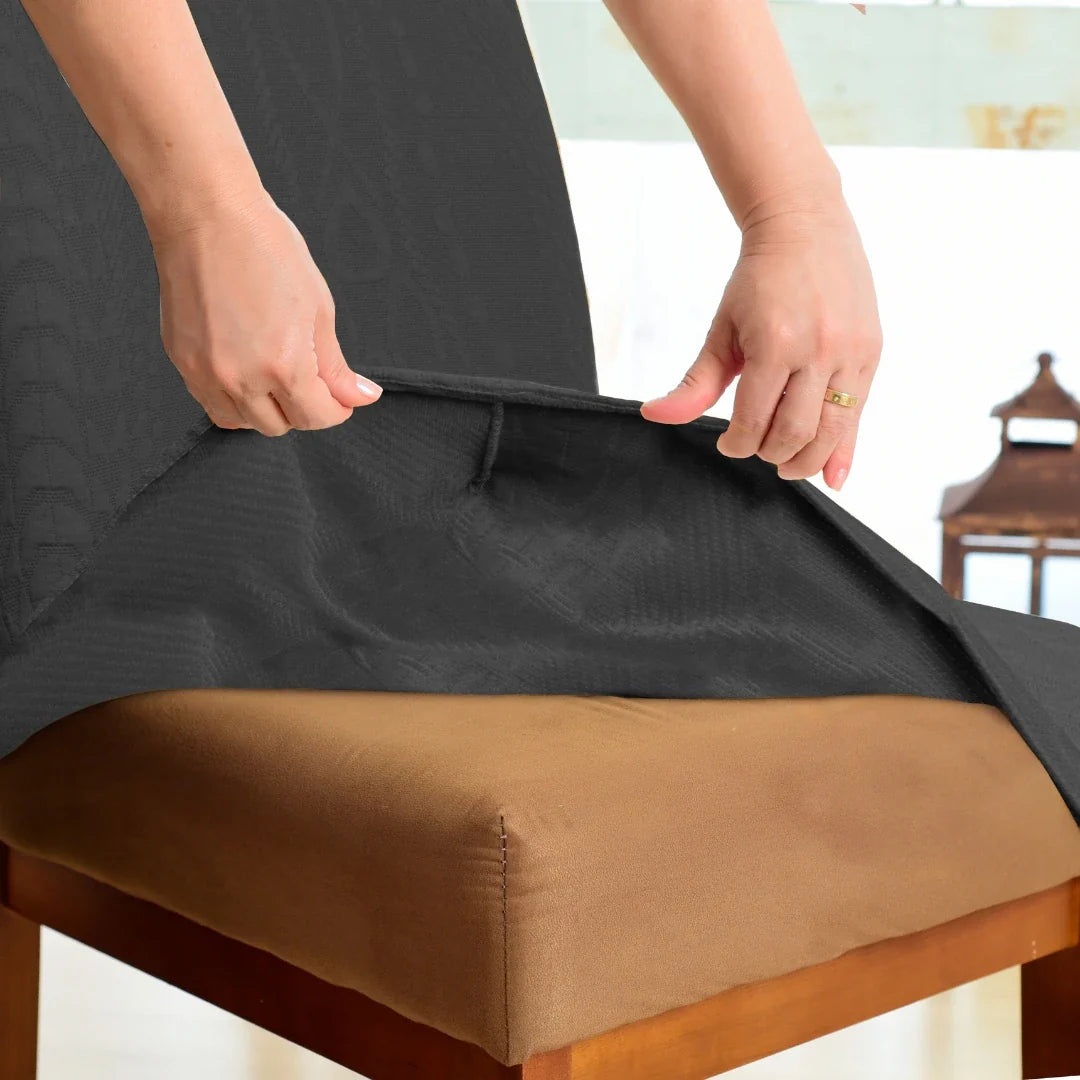 Conheça a lindaCapa Cadeira Boutique Verona - Cinza Escuro de Malha GEL exclusiva. A queridinha de quem precisa de mais conforto e proteção para as cadeiras de sala de jantar.