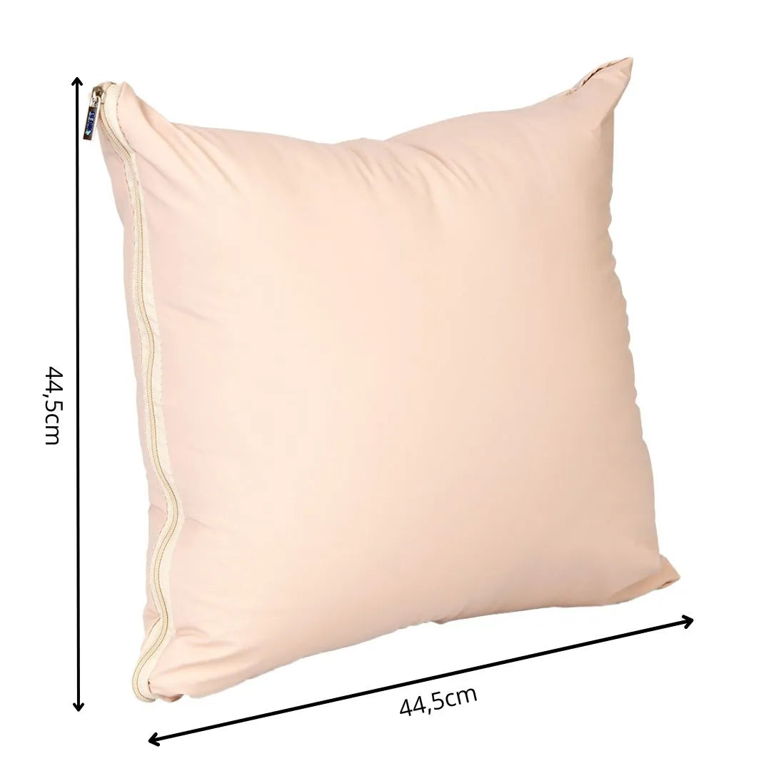 Possui fechamento em zíper para melhor acomodar a almofada.