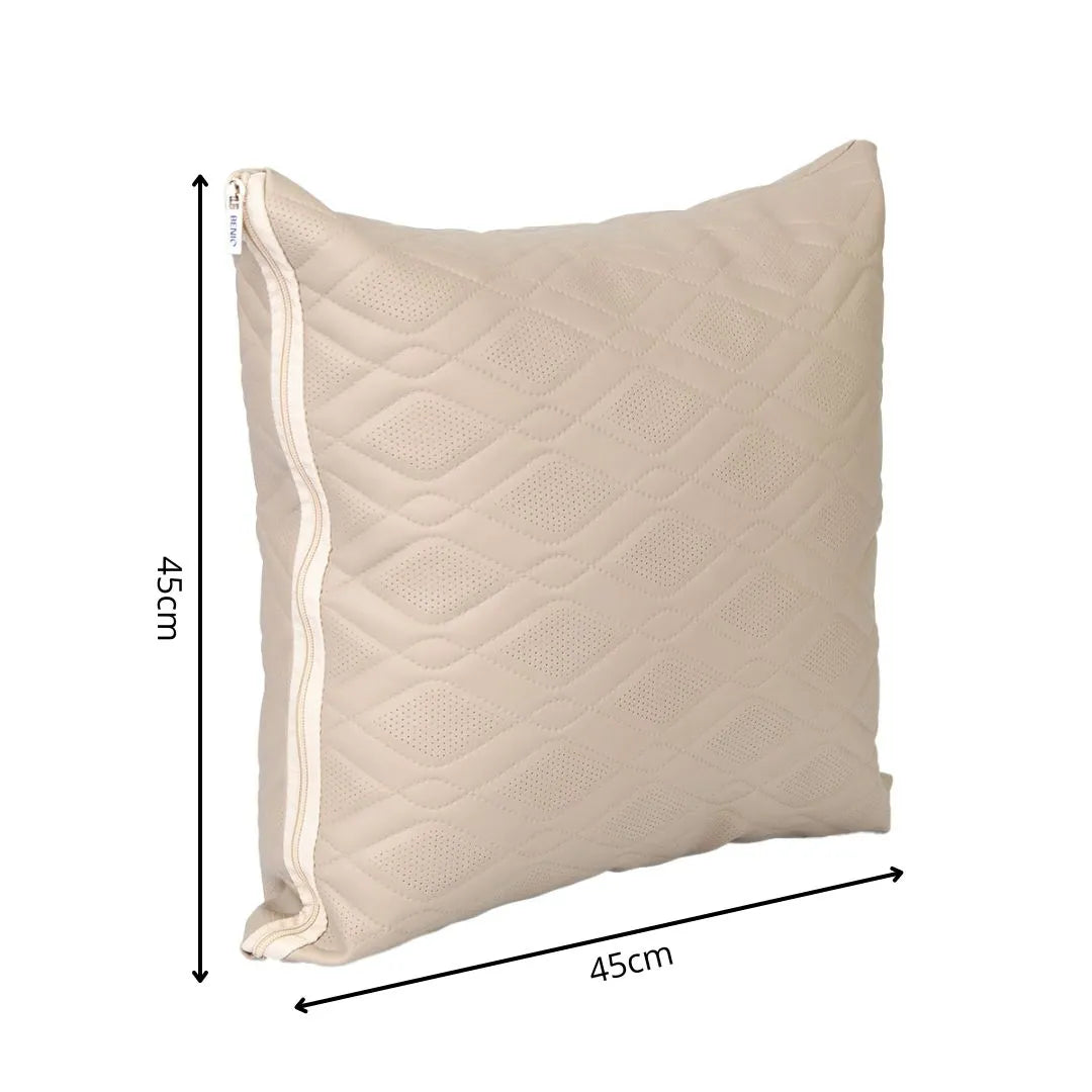 Possui fechamento em zíper para melhor acomodar a almofada.
