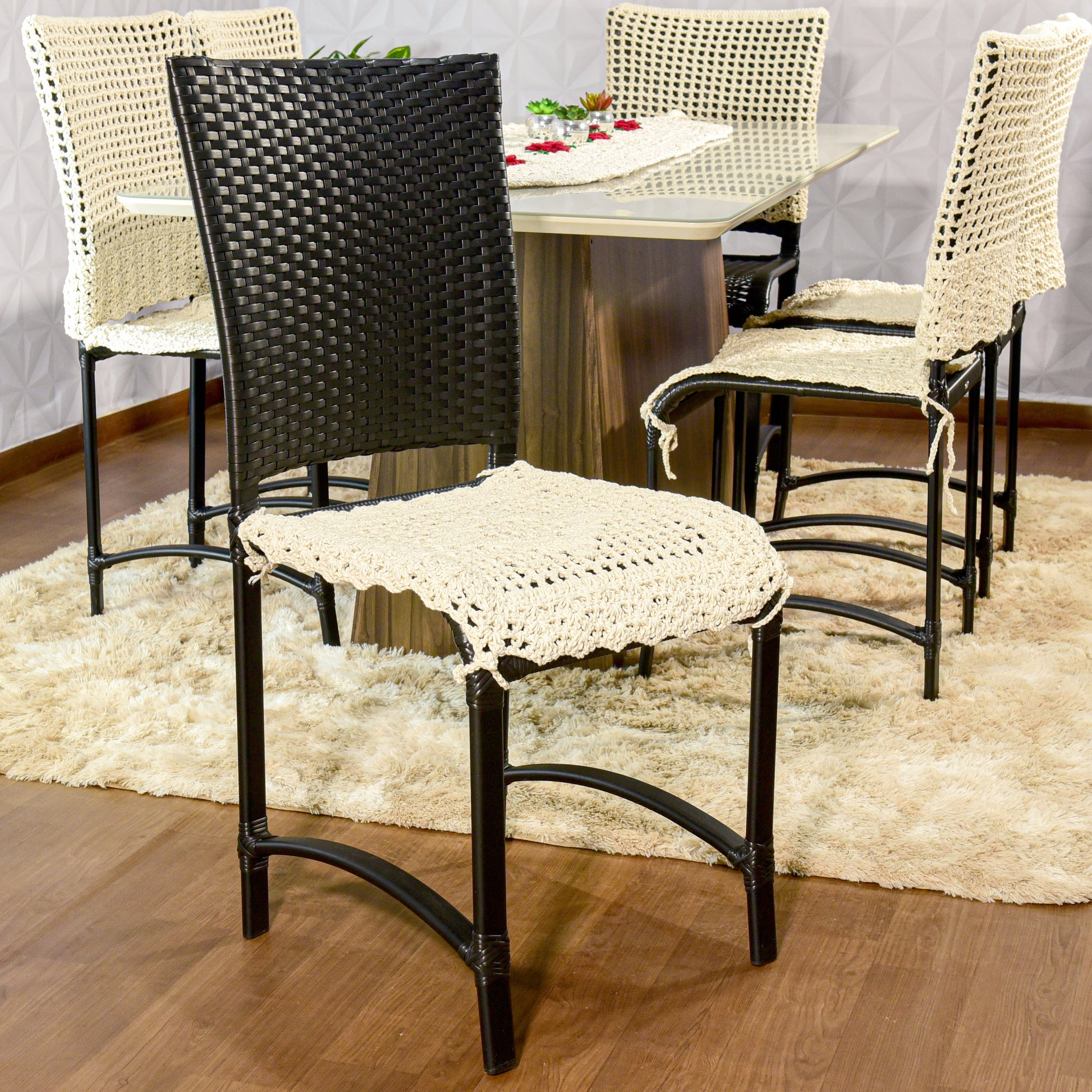 As capas de crochê ficam um luxo em cadeira de madeira / ferro ou estofadas.