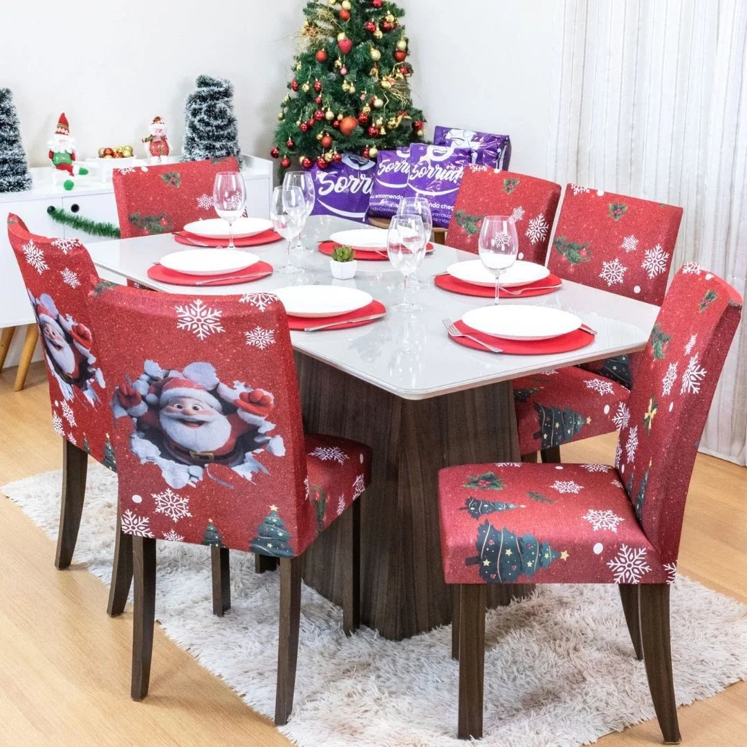 ❤️Item de Decoração Inovador no Natal de 2025 ❤️Complementa sua Decoração de Mesa de Natal ❤️Encobre imperfeições e manchas nas Cadeiras ❤️Capas que impressionam seus convidados e familiares ❤️Protege as Cadeiras contra líquidos e acidente