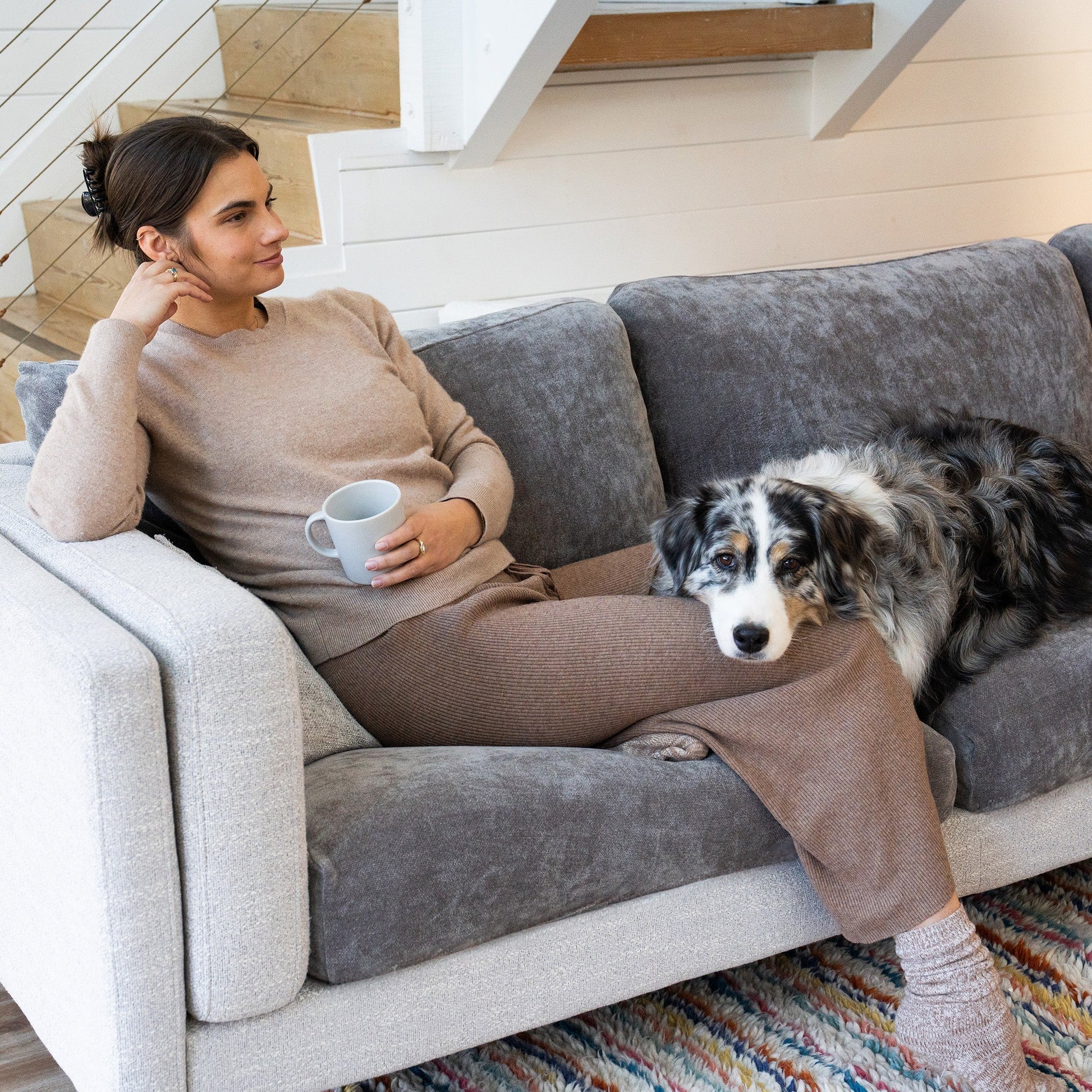 Com uma textura encorpada e macia que lembra a chenille, o tecido Plush combina luxo e aconchego. Macia, altamente elástica e resistente a rugas e amassados, ela mantém-se firme no lugar e é prática para lavar.