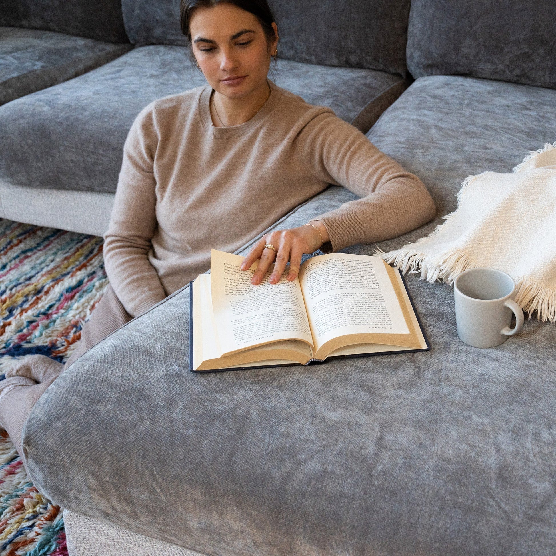 Conheça a linda Capa de Sofá de Canto Plush Cinza Chumbo de Qualidade Internacional que protege, conserva e decora seus sofás.