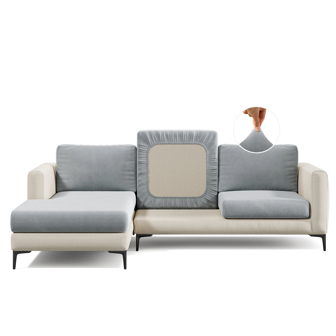 Conheça a linda Capa de Sofá de Canto Veludo Cinza Claro de Qualidade Internacional que protege, conserva e decora seus sofás.