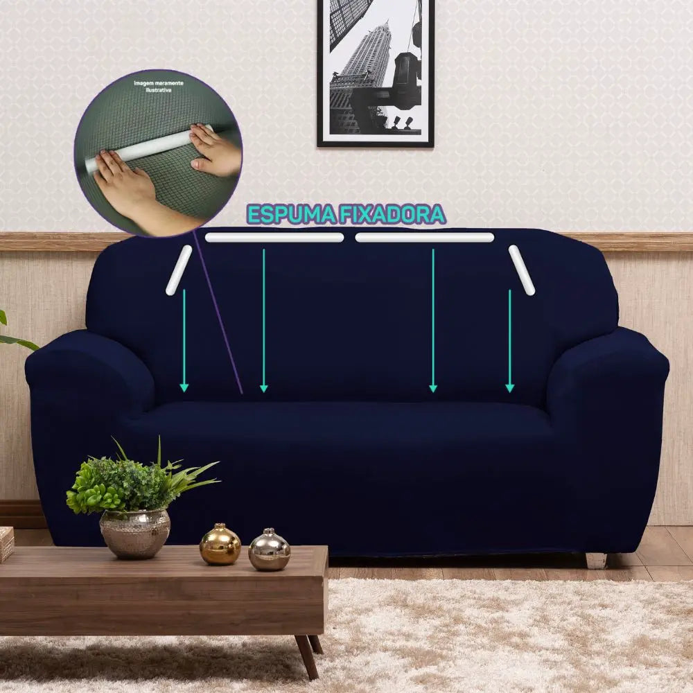 Confira a seguir todos os detalhes das medidas, materiais, garantias e prazo de entrega da Capa para Sofá Elastex Azul Marinho Exclusiva Charme do Detalhe.