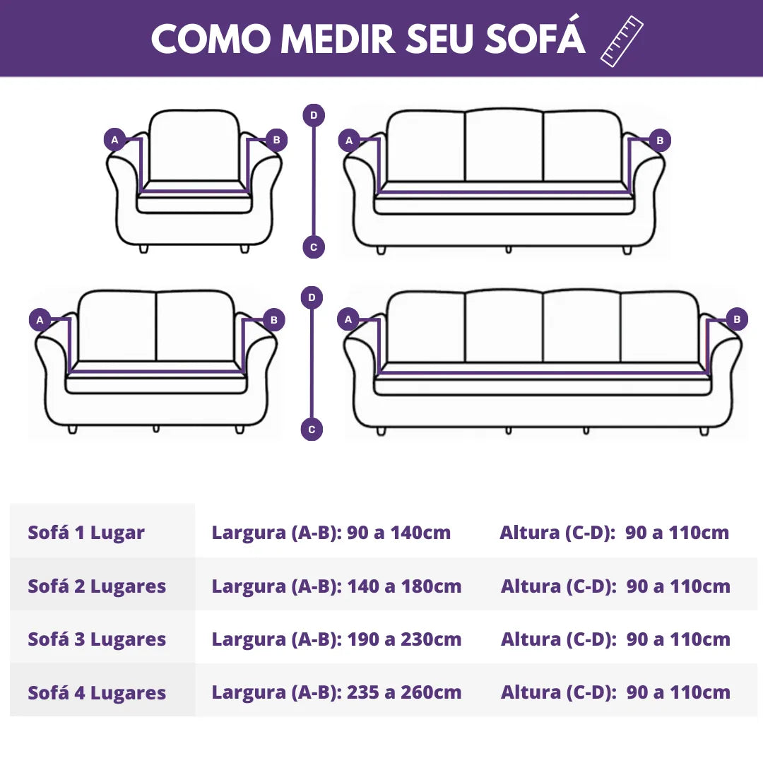 - capa de sofá 4 Lugares: Largura 235 à 260 cm e Altura (90 à 110cm)