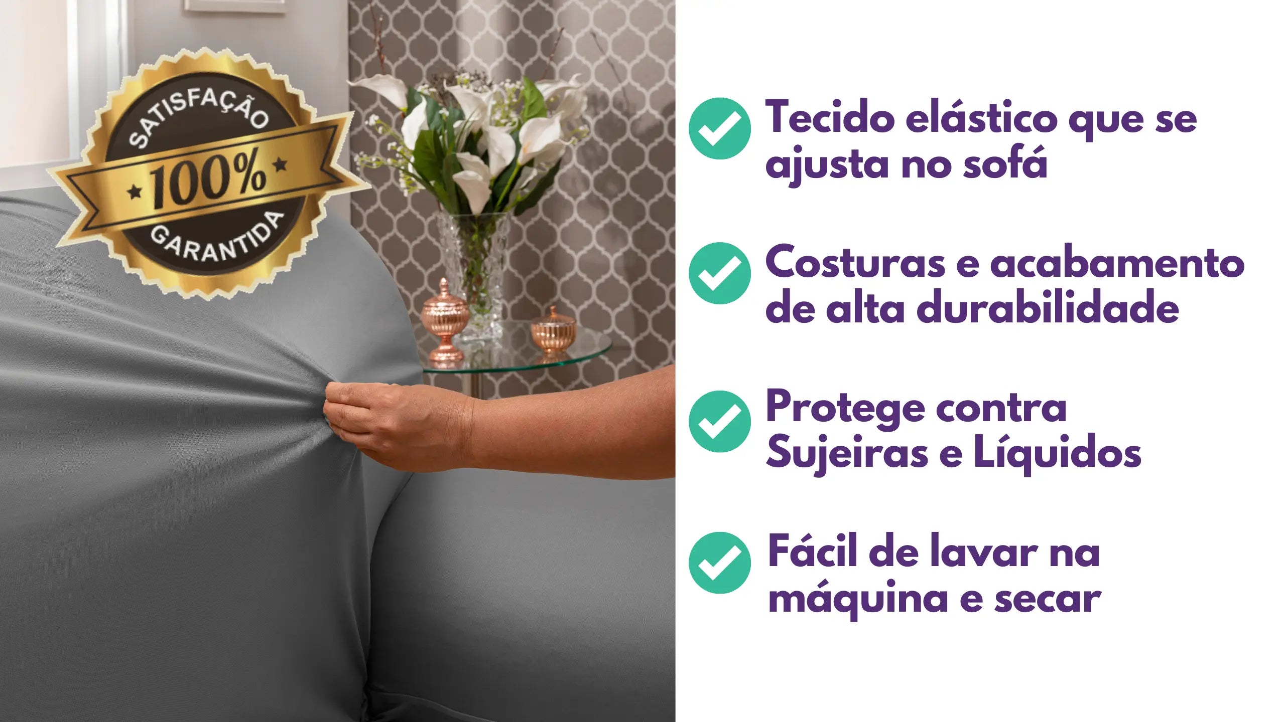 - Seu sofá continuará novo, pois esta capa conserva e preserva os estofamentos.