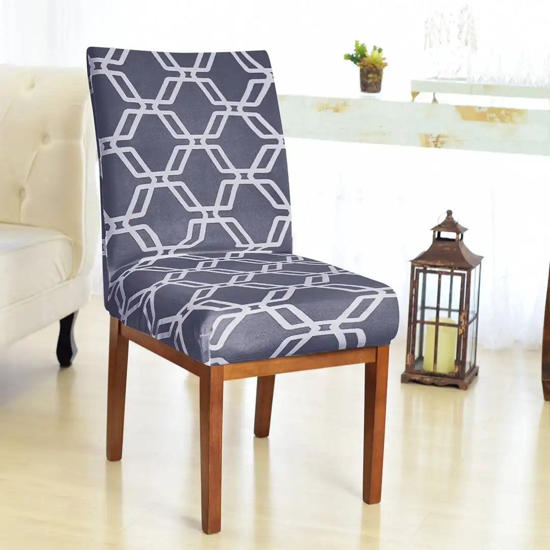 Conheça a linda Capa para Cadeira Elastex Geo Chumbo da Charme do Detalhe. Com estampa de folhas em tons de cinza, que irá transformar suas cadeiras em Elegantes itens de Decoração.