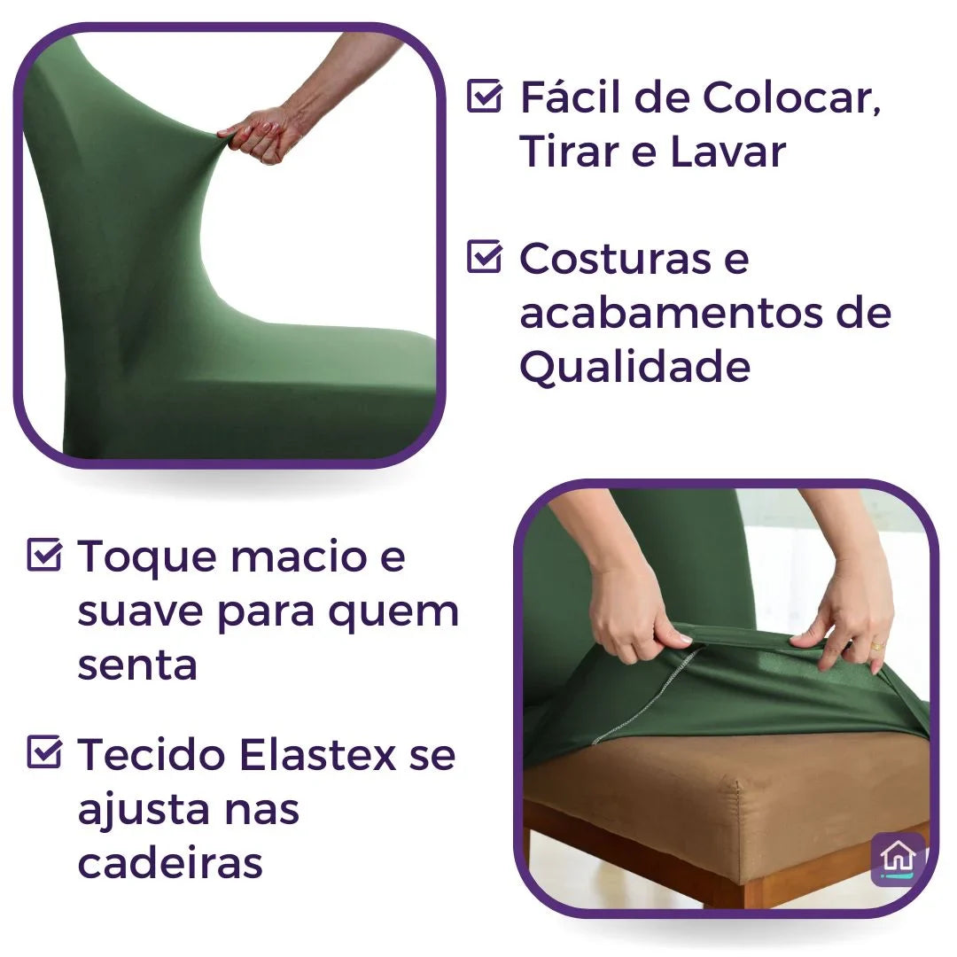 A capa para cadeira Verde Oliva elastex da Charme se adapta à diversos modelos de cadeiras.