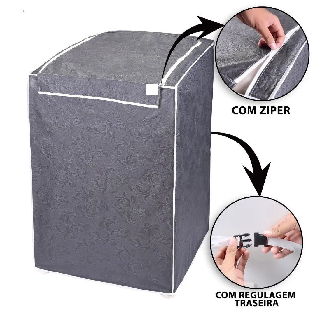 ❤️Clique de Ajuste para um ajuste ideal em diversos tipos de máquinas ❤️Superfície em Filme Impermeável leve de fácil lavagem (basta passar um pano) ❤️Tampa com Smart Zíper para utilização da máquina normalmente enquanto estiver com a capa