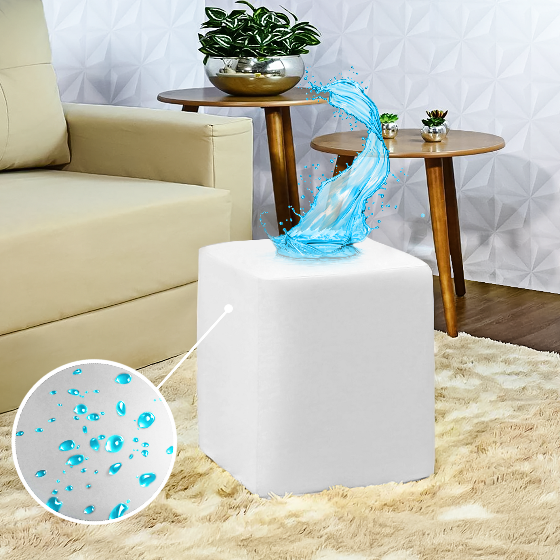 Nossa Capa para Puff Quadrado Impermeável e Anti manchas, com tecido especial resistente a umidade, que não absorve líquidos e não deixa que os resíduos penetrem e manchem a superfície.