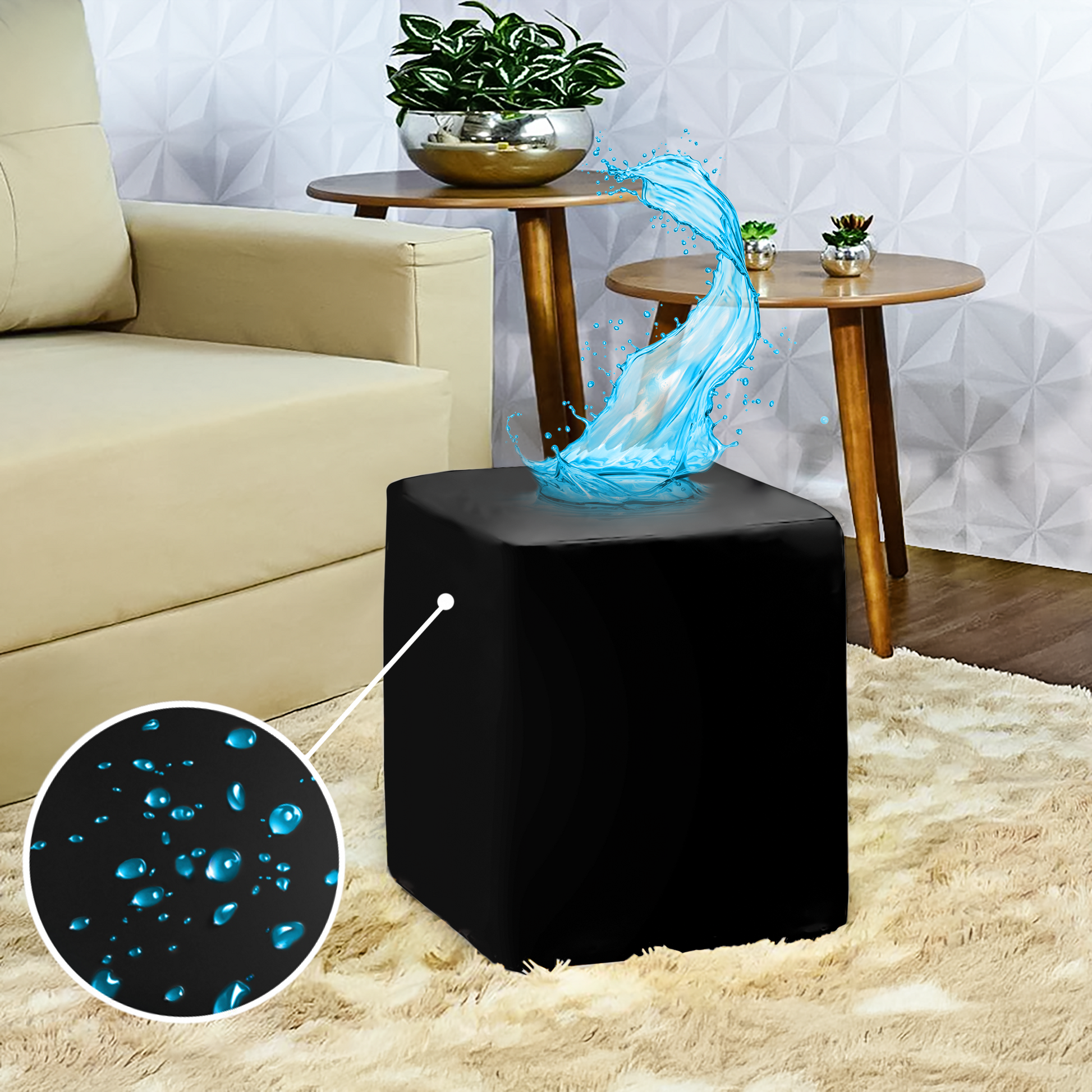Nossa Capa para Puff Quadrado Impermeável e Anti manchas, com tecido especial resistente a umidade, que não absorve líquidos e não deixa que os resíduos penetrem e manchem a superfície.
