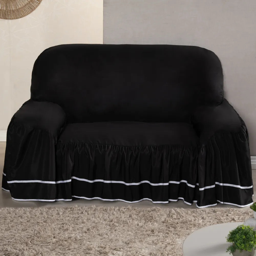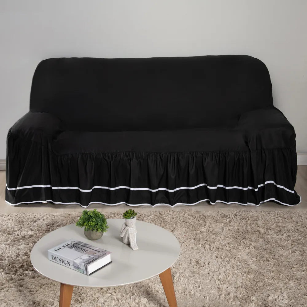 Tecido flexível que se adapta ao tamanho do sofá. As medidas do produto podem sofrer uma pequena variação entre uma unidade e outra, mas não comprometem o uso. As cores do produto podem ser levemente diferentes dependendo da tela do celular ou computador que você vê as fotos.