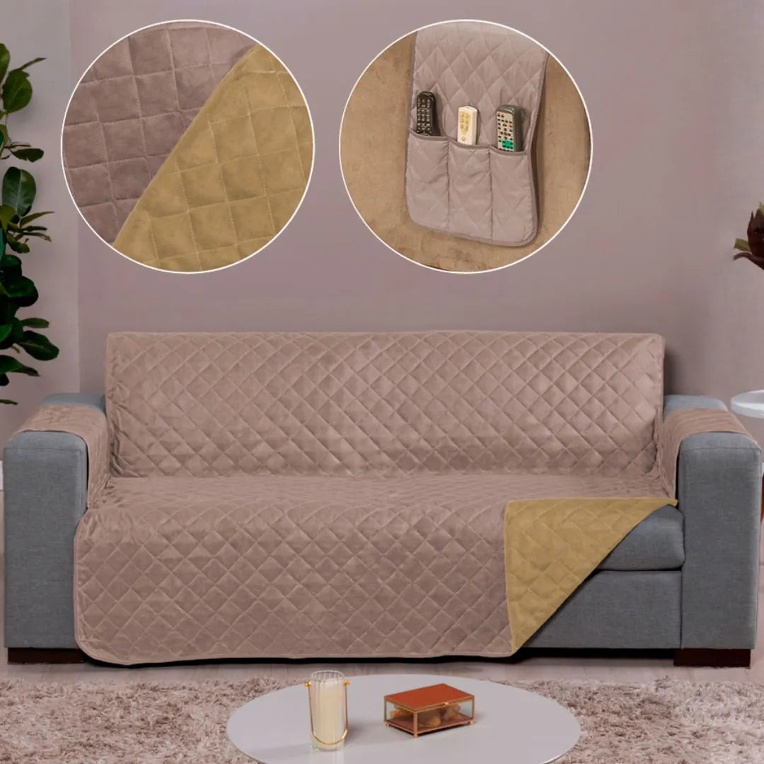 A Loja Charme do Detalhe apresenta a você esta linda capa protetora na cor caqui-palha DUPLA FACE de alta qualidade que protege, conserva e decora seus sofás de 1, 2, 3 ou 4 lugares.