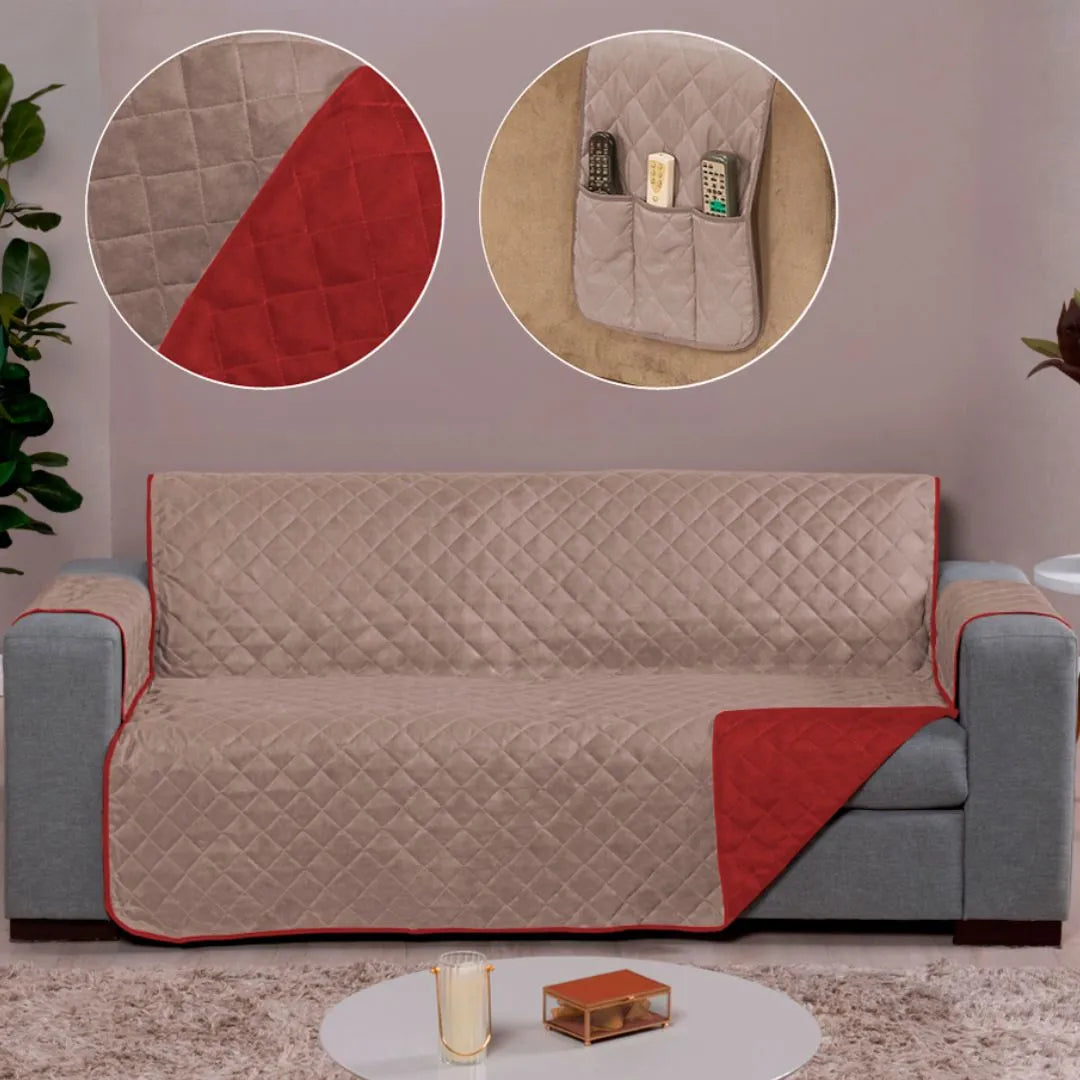A Loja Charme do Detalhe apresenta a você esta linda capa protetora na cor Caqui-Vermelho DUPLA FACE de alta qualidade que protege, conserva e decora seus sofás de 1, 2, 3 ou 4 lugares.