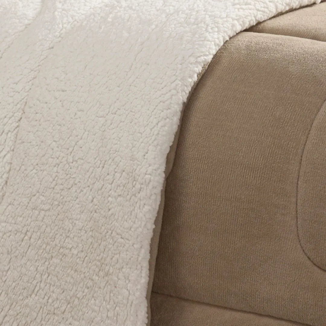 De um lado o toque macio da manta soft fleece, do outro uma deliciosa sensação deliciosa de lã de carneiro (material sintético).