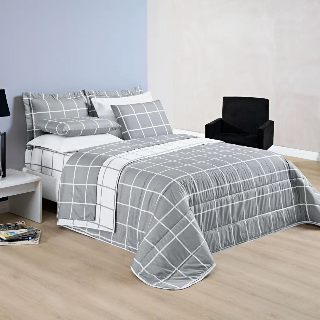 A Loja Charme do Detalhe apresenta a você este lindo cobre leito dupla face Cinza de alta qualidade que protege, conserva e decora a sua cama.