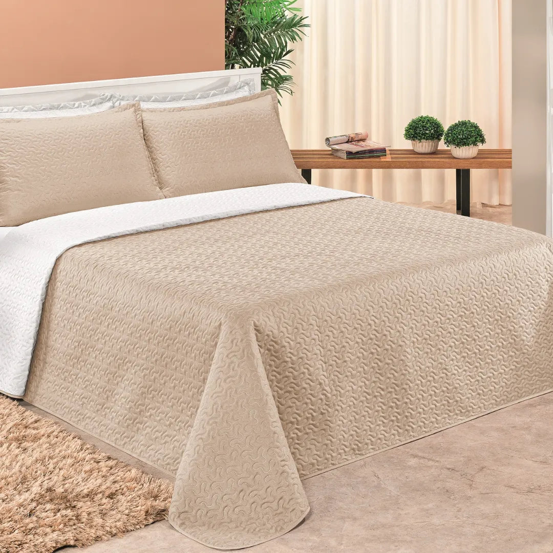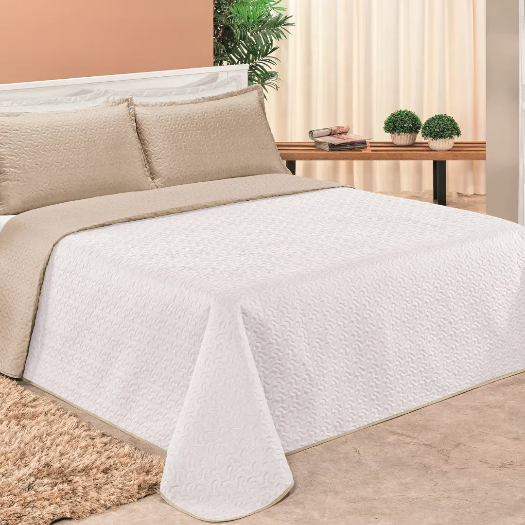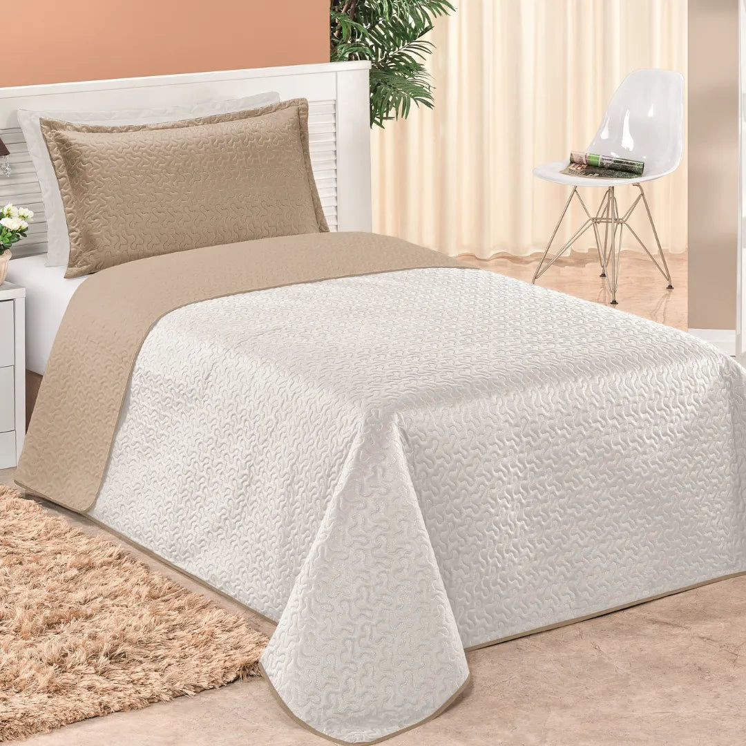 Cobre Leito Dupla Face Clara Caqui e Branco - Vários tamanhos
