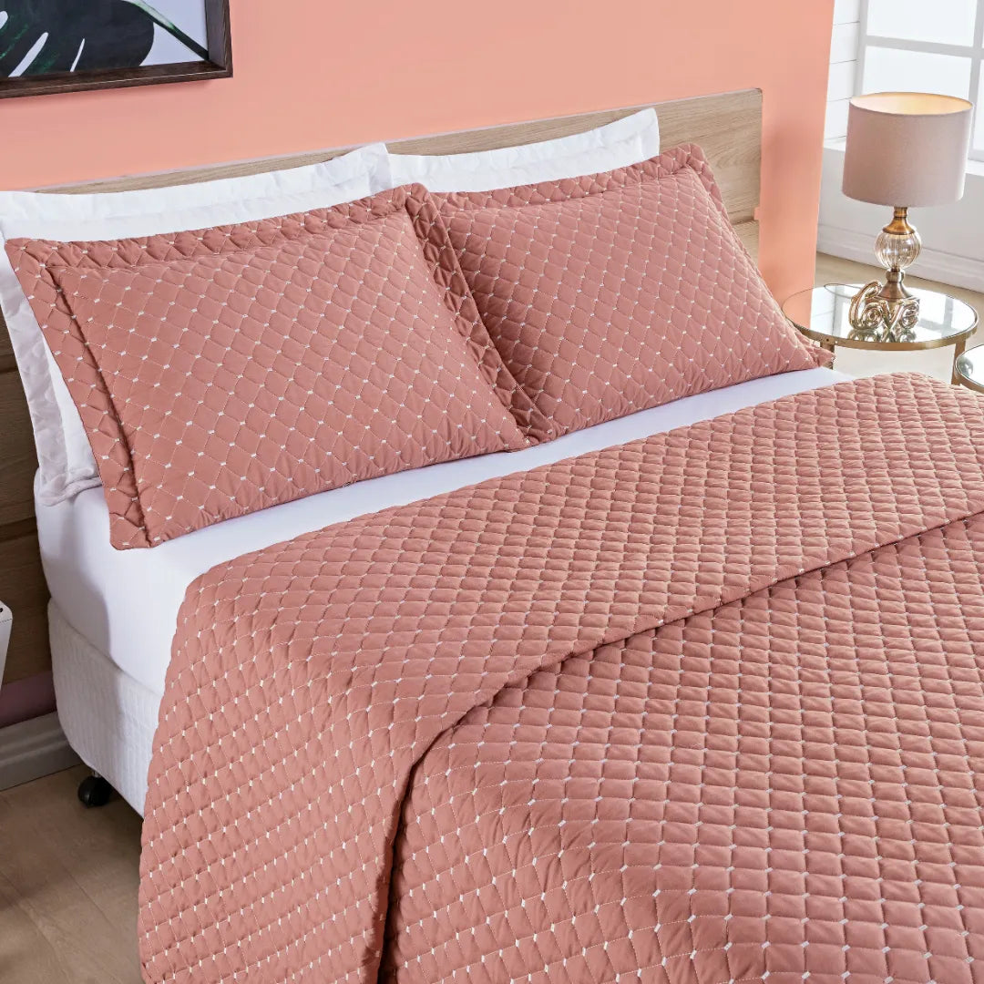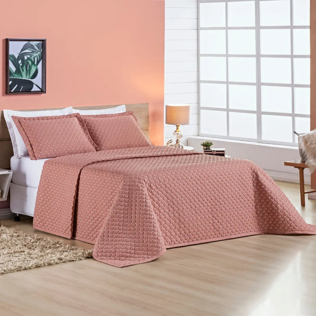 A Loja Charme do Detalhe apresenta a você este lindo cobre leito dupla face Ravena Rosê de alta qualidade que protege, conserva e decora a sua cama.