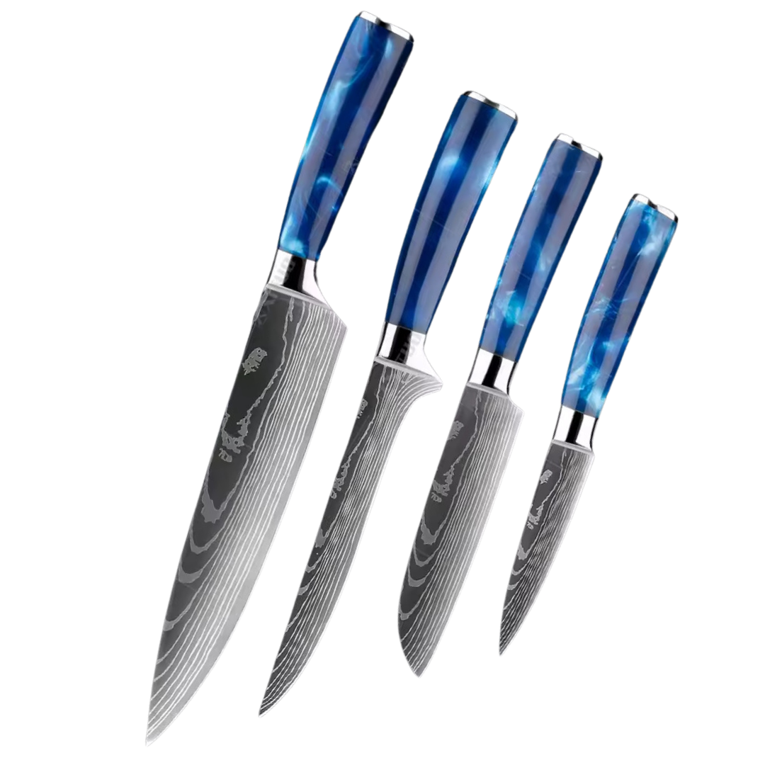 Conj 4 Facas Chef Punho Em Resina Acabamento Premium Inoxidável