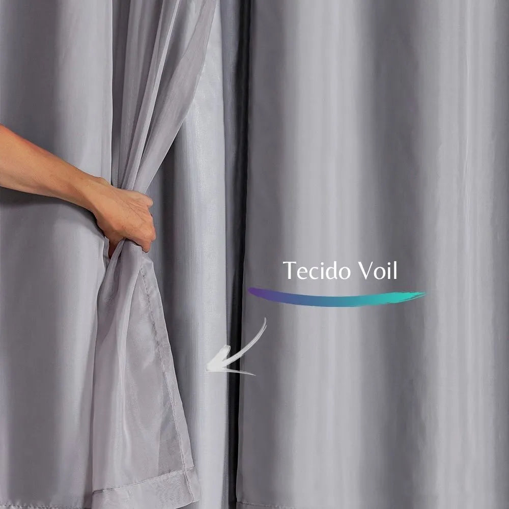 A Cortina Sala Quarto Cinza da Charme do Detalhe possui o total 2 camadas. A primeira interna Blackout que irá controlar a luminosidade da sua sala na medida ideal para seu gosto.