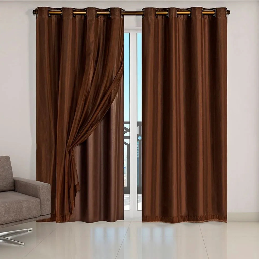 A Cortina Sala Grande Tabaco da Charme do Detalhe possui o total 2 camadas. A primeira interna Blackout que irá controlar a luminosidade da sua sala na medida ideal para seu gosto.