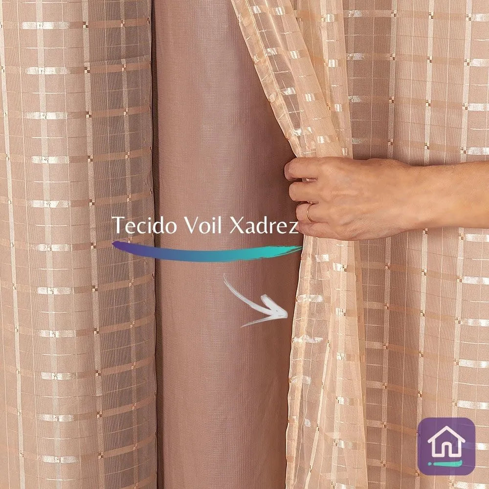 Apaixone-se pela cortina para sala ou quarto Voil Xadrez Avelã que é capaz de tornar seu ambiente mais moderno ao mesmo tempo que controla a luminosidade do ambiente com seu tecido 100% Blackout.