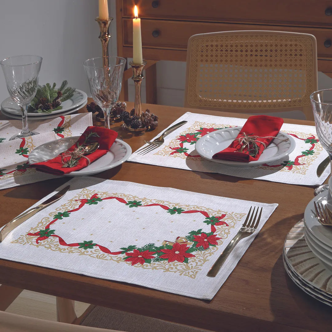 Conheça o Jogo Americano Natal da Charme. Adorado por ser Ideal para uma decoração simples e super recomendado para compor uma mesa de natal mais Decorada.