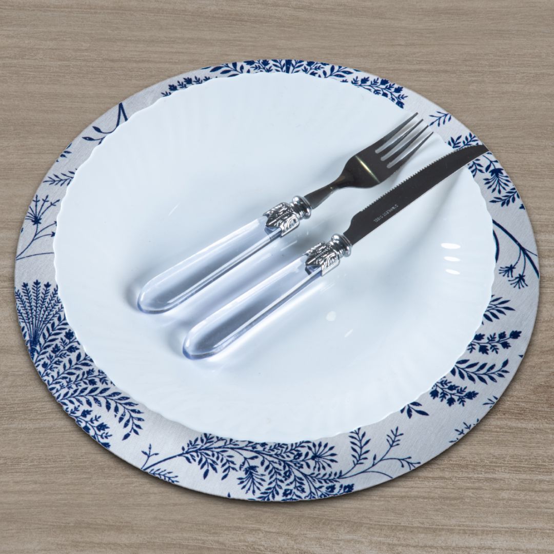 Conheça esse lindo Jogo Americano Redondo Sousplat Azul Violeta da Charme do Detalhe. Alta Qualidade e bom gosto capaz de Transformar a beleza e elegância da decoração da sua mesa.