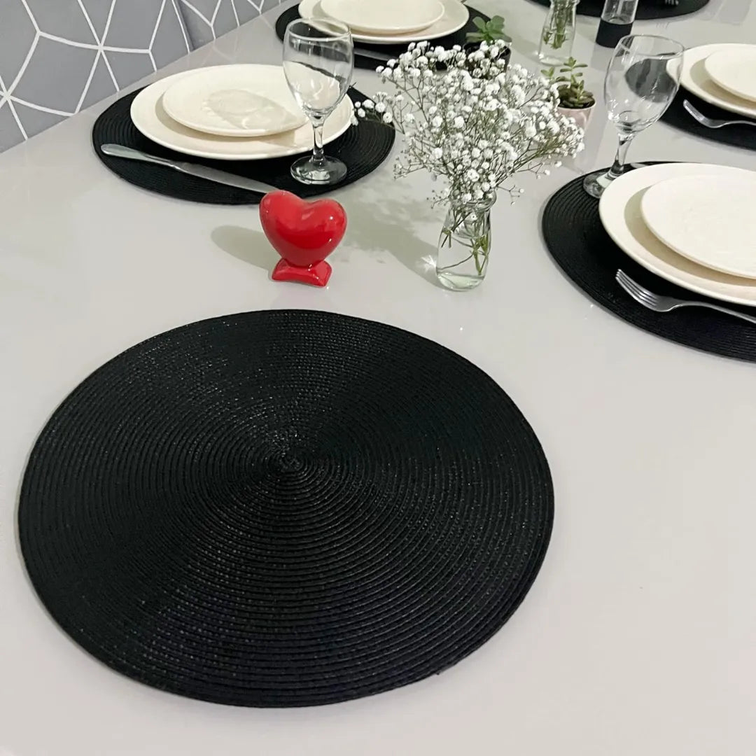 Jogo Americano Redondo Sousplat Impermeável - Preto
