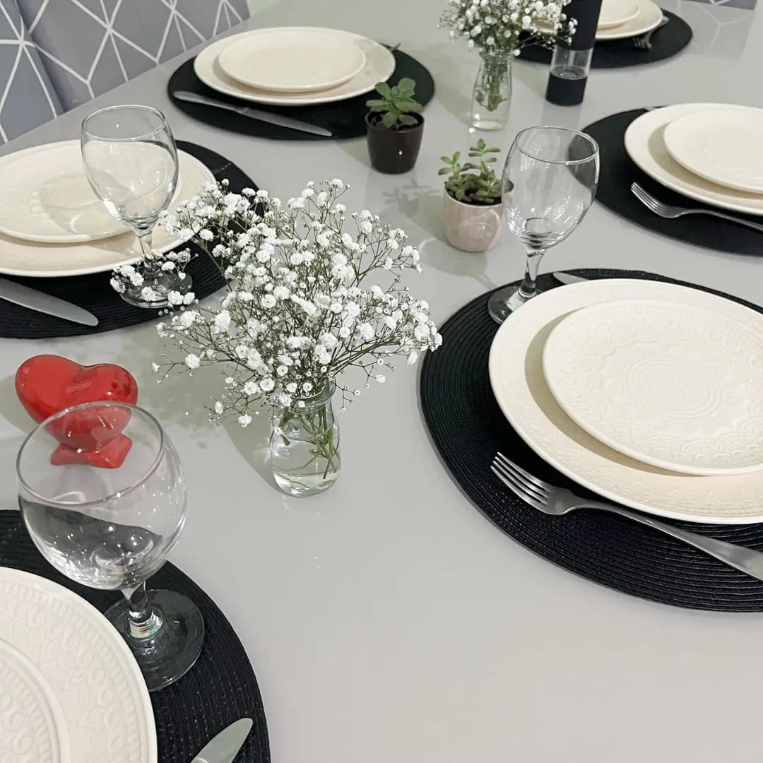 Esse Jogo Americano Redondo Sousplat Impermeável é garantia de sucesso para tornar os momentos à mesa mais especiais. Surpreenda seus familiares e amigos com esse jogo americano redondo impermeável cheio de Charme e Estilo.