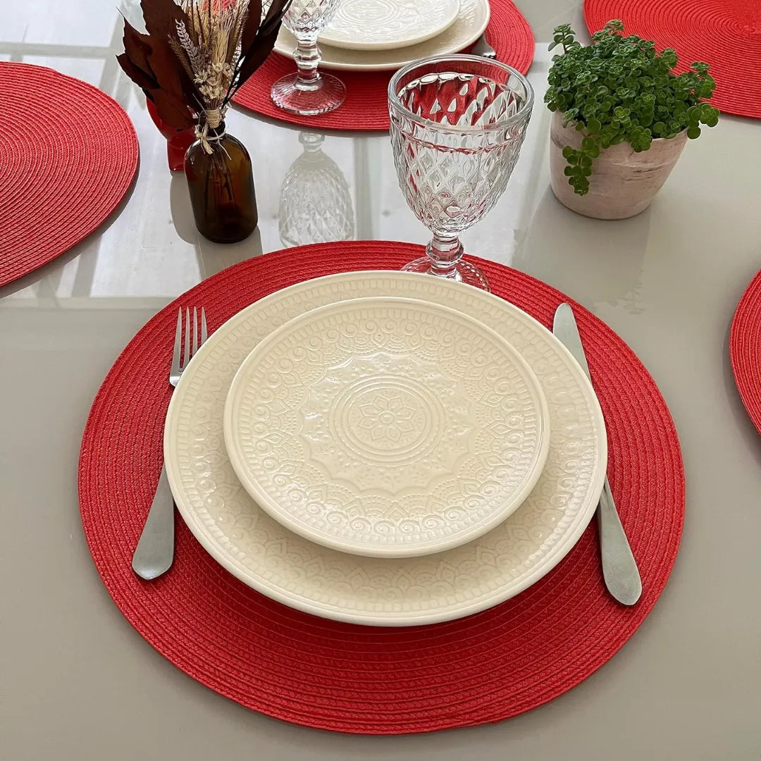 Jogo Americano Redondo Sousplat Impermeável - Vermelho