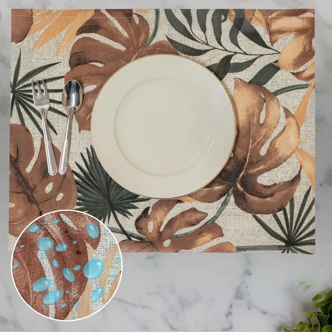 Conheça o Jogo Americano Tecido Impermeável Folhagem da Charme do Detalhe! Esse jogo americano vai deixar sua mesa posta simplesmente maravilhosa. Além de ser perfeito para decorar, ele oferece alta proteção, com material repelente que conta com tecnologia contra líquidos e manchas, mantendo sua mesa sempre limpa e elegante.
