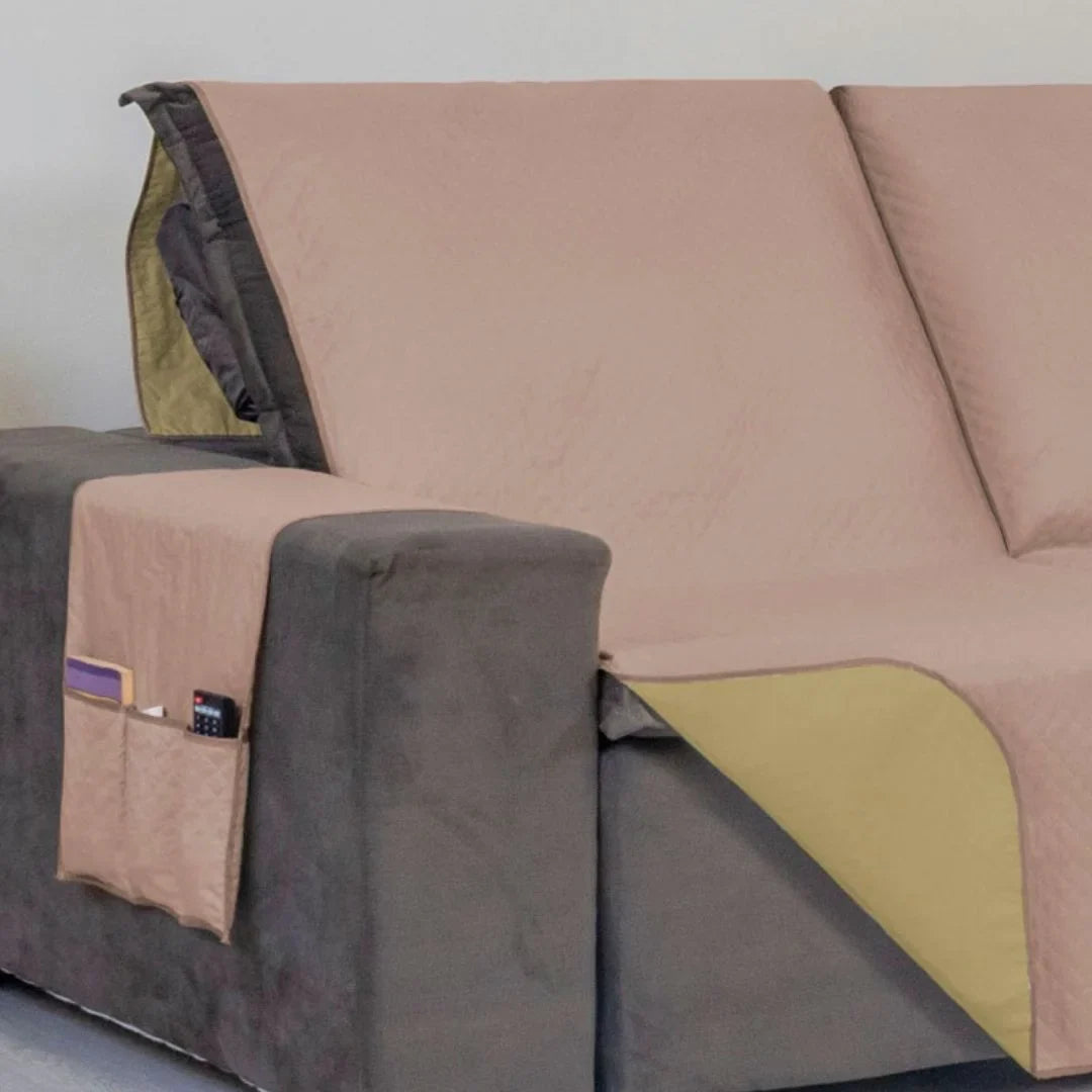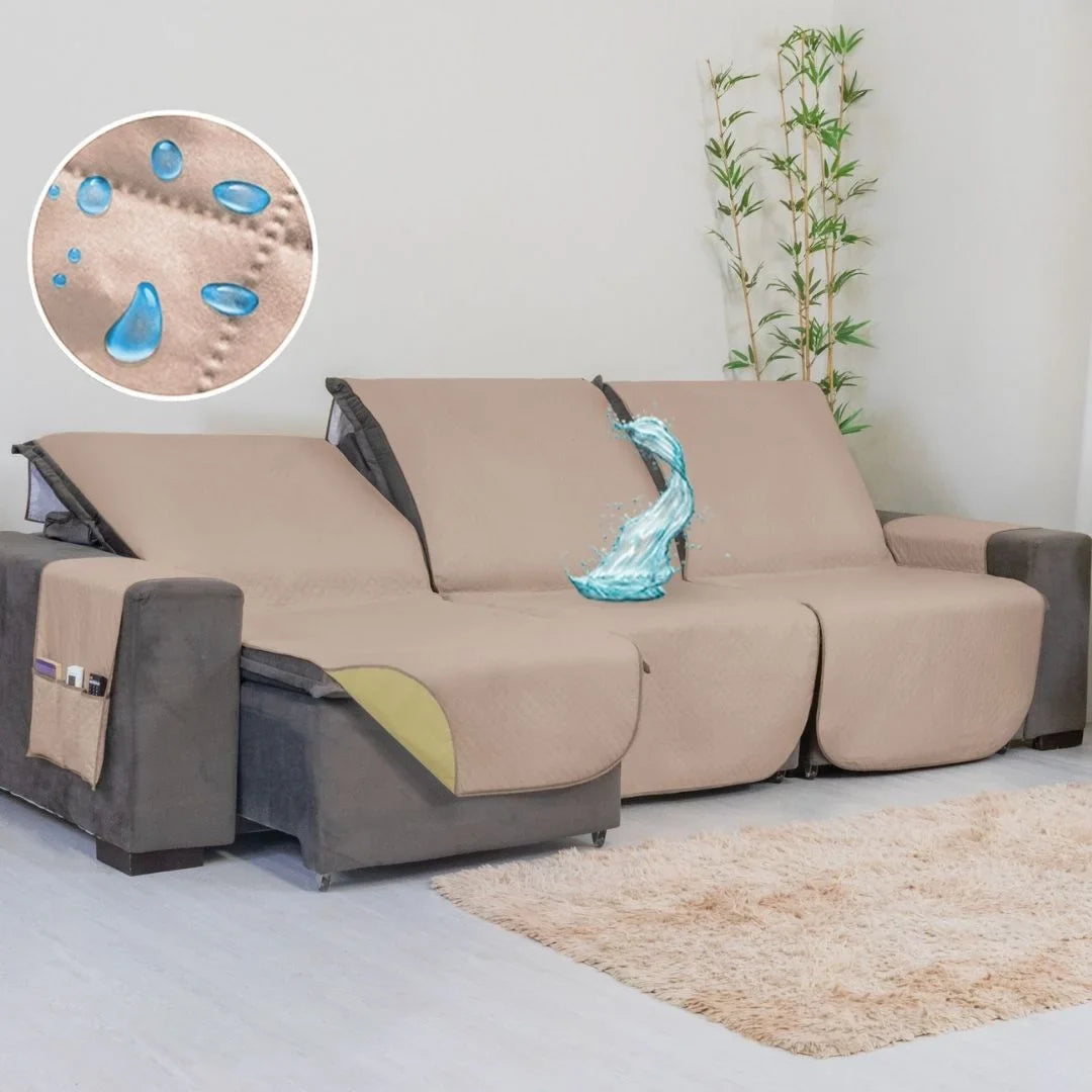 Protetor Sofá Retrátil 3 Módulos Impermeável Dupla Face Caqui-Palha