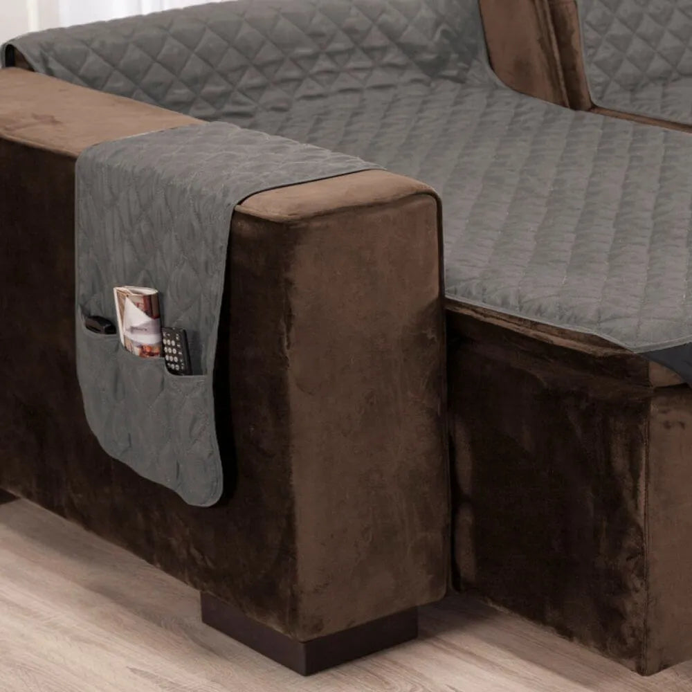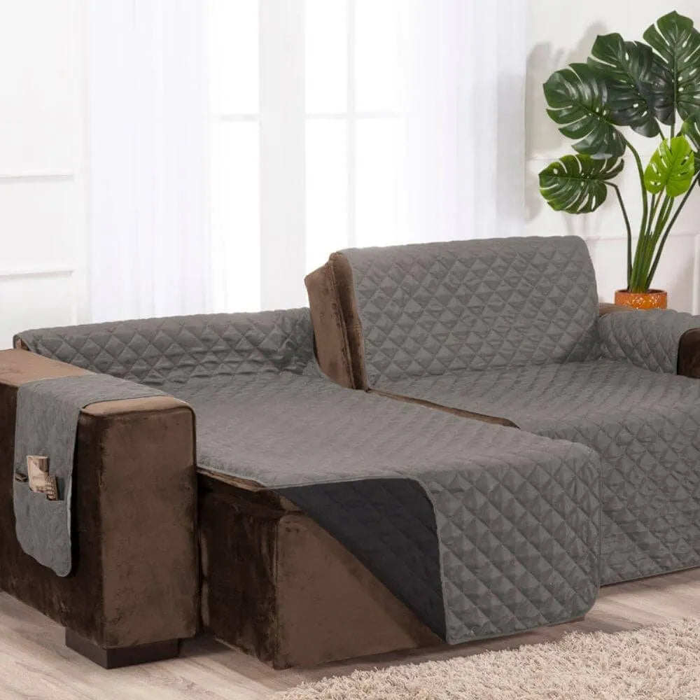 Protetor Sofá Retrátil Dupla Face Cinza-Preto