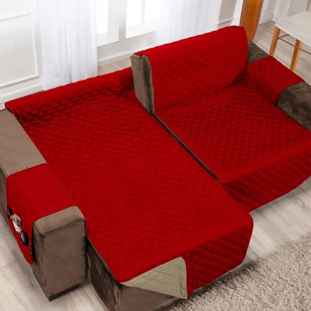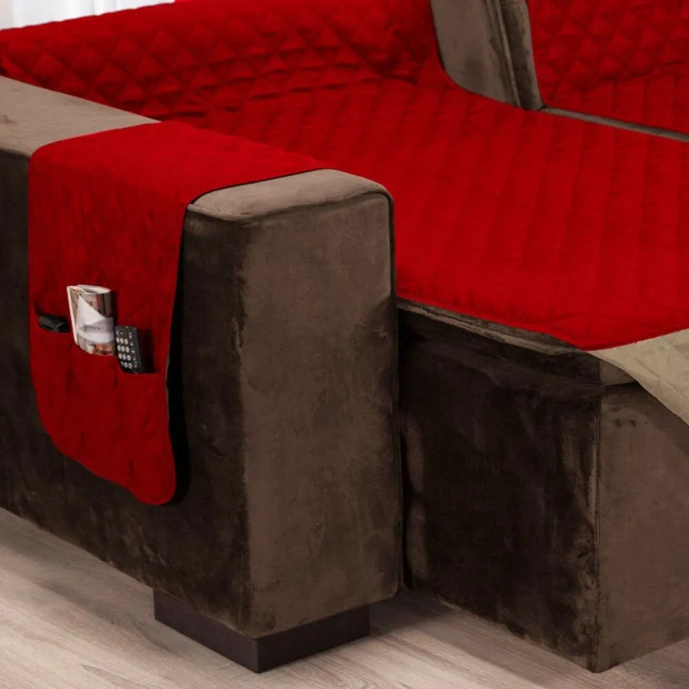 Protetor Sofá Retrátil Dupla Face Vermelho-Caqui