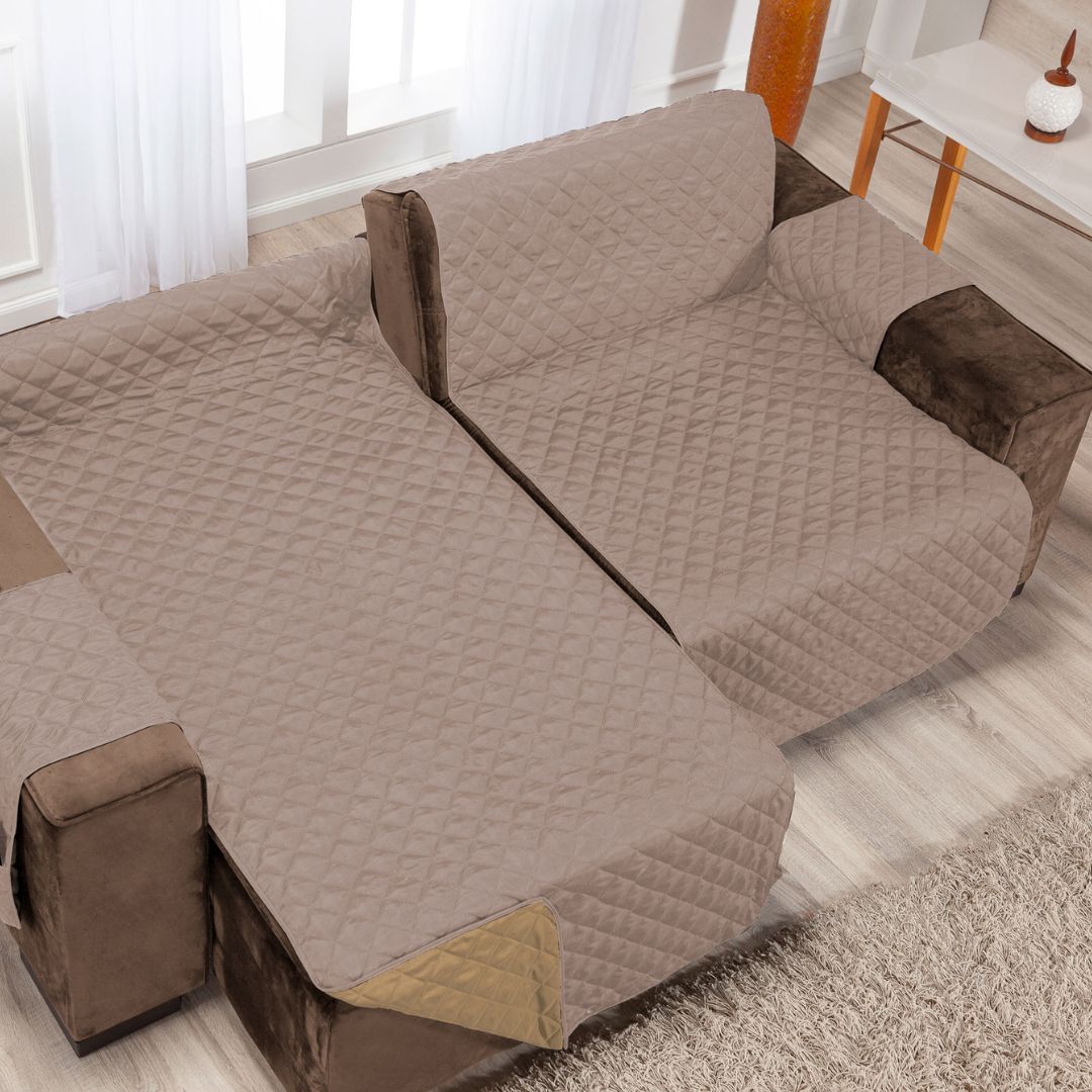 Protetor Sofá Retrátil Impermeável Dupla Face Caqui-Palha