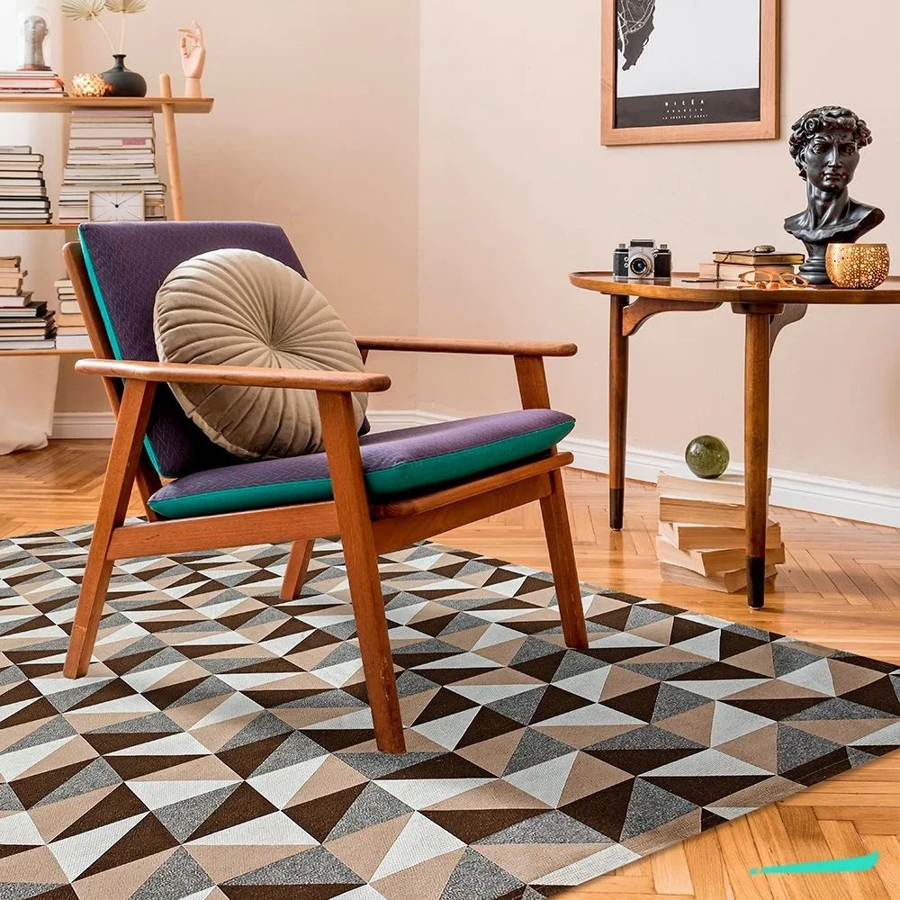 Modelo de Tapete Geométrico Inspirado nos melhores padrões de Cores e Estampas mais Modernos da atualidade. O Tapete para sala e Quartos da Charme enriquece a Decoração do seu ambiente de forma Impressionante.
