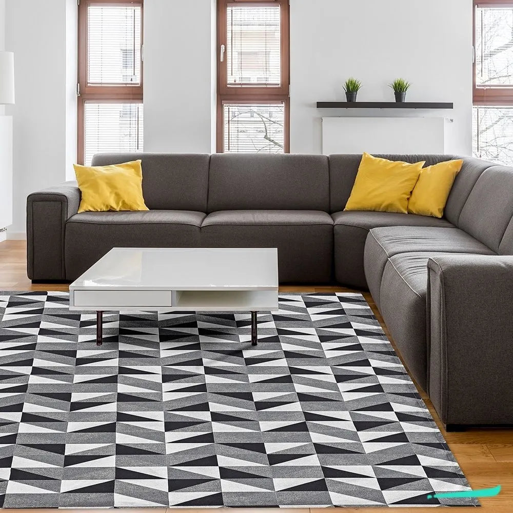 Modelo de Tapete Geométrico Inspirado nos melhores padrões de Cores e Estampas mais Modernos da atualidade. O Tapete para sala e Quartos da Charme enriquece a Decoração do seu ambiente de forma Impressionante.